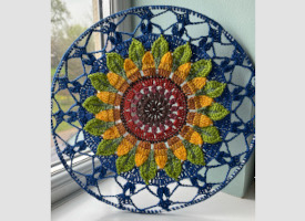 Bright and cheerful mandala inspired by sunflower blooms with golden yellows and warm centers radiating outward.